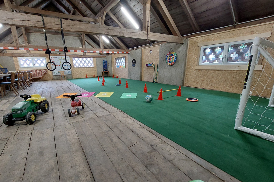 Unser großer Spieleraum mit Tischtennis, Billard, Dart, Rutsche, 2 Traktoren viele Bausteine, Spieleteppich, Wandspiele, für Groß und Klein steht zur Verfügung. Auch auf unserer Kletterwand kann vorher geübt werden, wenn es dann vielleicht einmal zur City Rock Kletterhalle nach Liezen geht.
